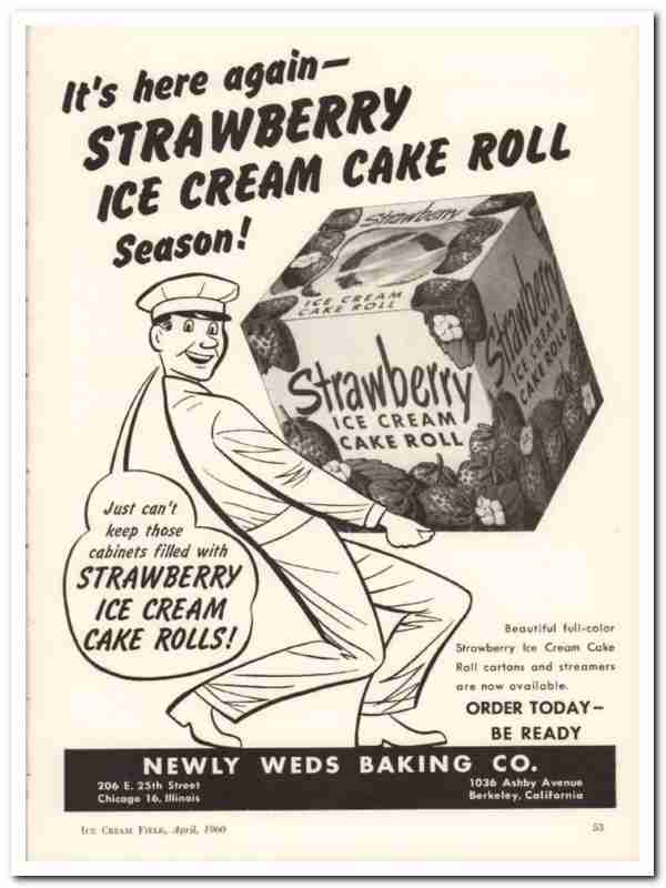Newly Weds Baking Company 1960 Vintage Ad Ice Cream Strawberry Cake