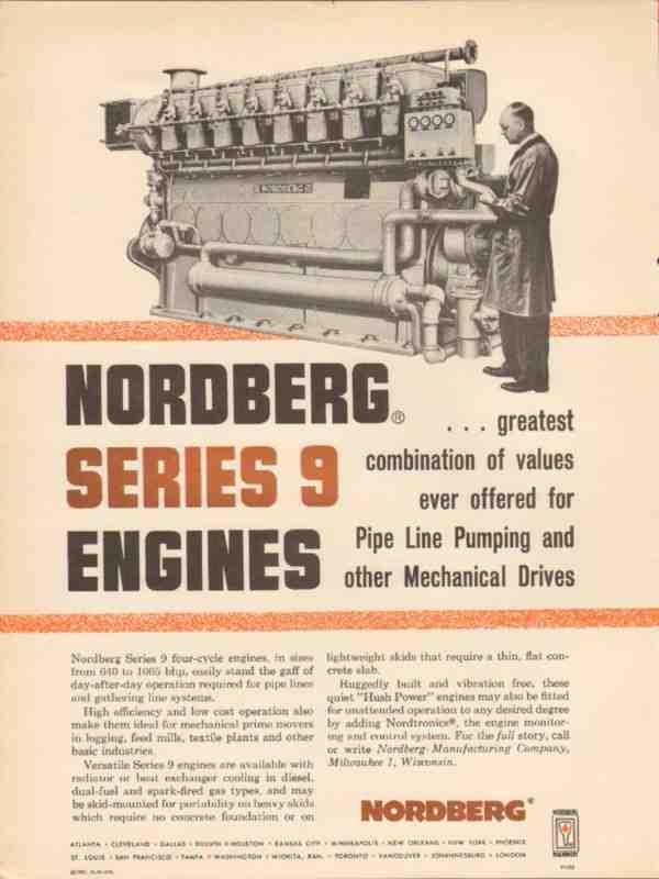 Nordberg Mfg Company 1962 Vintage Ad Engines Pipeline Pumping Series 9