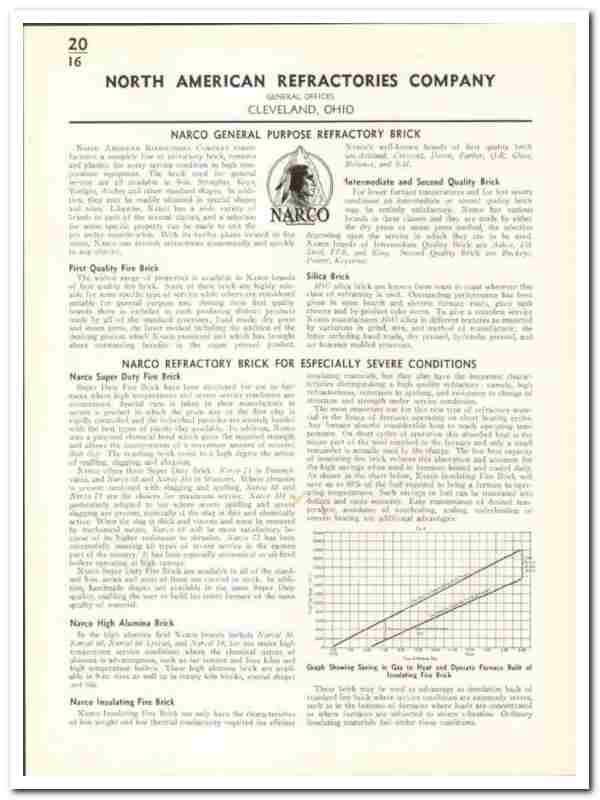 Products include Narco Super Duty Fire Brick, Narco High Alumina Brick, Narco Insulating Fire Brick, Narco Cements and Plastics, all are fully featured.