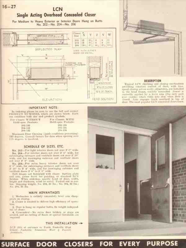 Norton Lasier Company 1941 Vintage Catalog Door Closers LCN Concealed