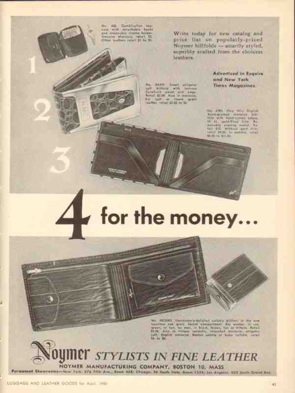 Noymer Mfg Company 1950 Vintage Ad Leather Billfolds Wallets Money