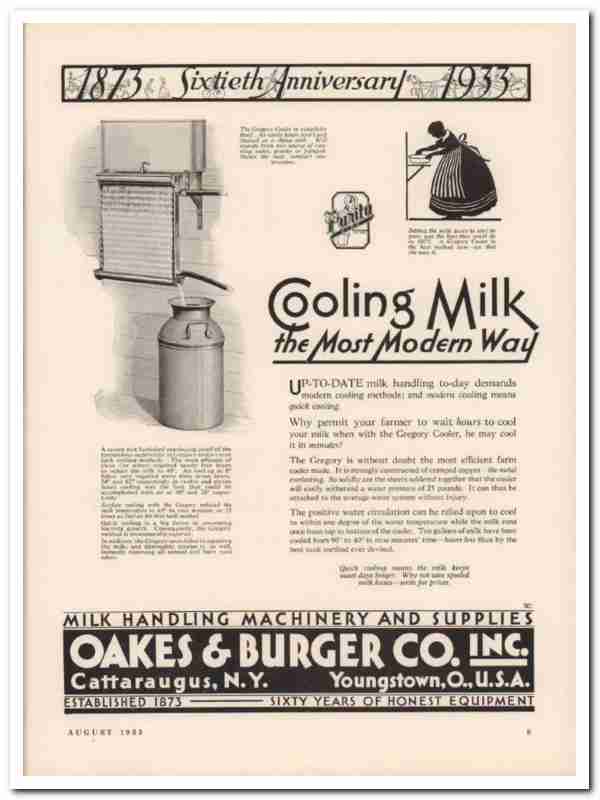 Oakes Burger Company 1933 Vintage Ad Milk Cooling Sixtieth Anniversary