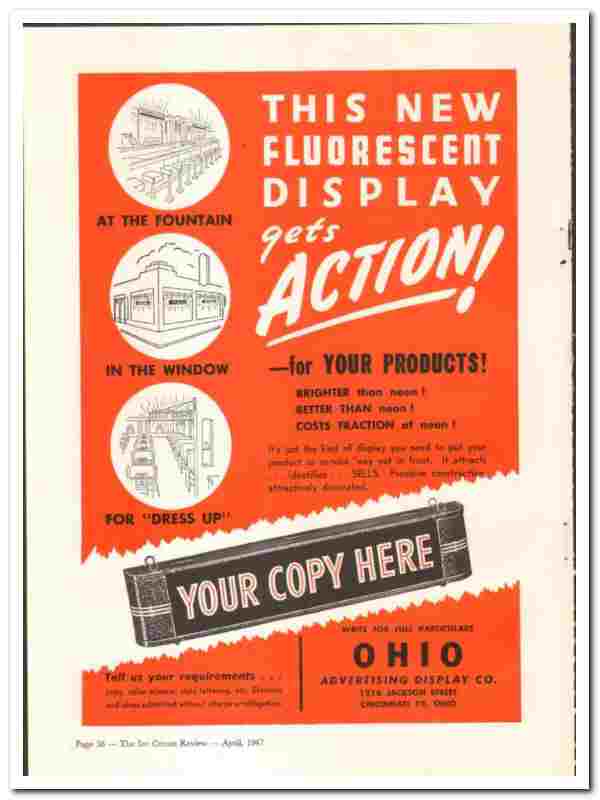 Ohio Advertising Display Company 1947 vintage ice cream ad Fluorescent