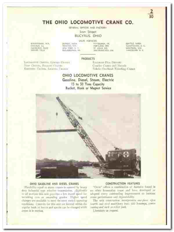 Original 1939 tractor trade vintage catalog for the OHIO LOCOMOTIVE CRANE COMPANY. Main office and plant were located on Iron Street, Bucyrus, OH.