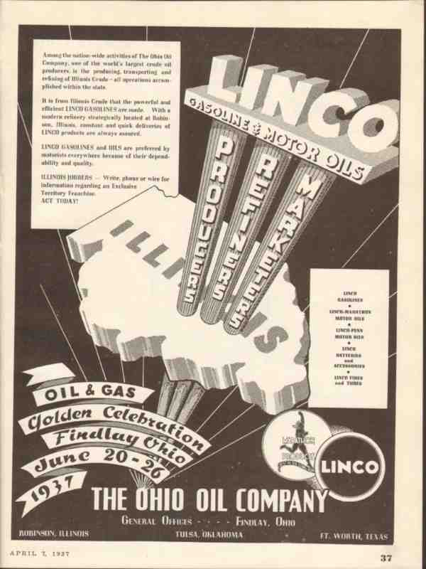 Ohio Oil Company 1937 Vintage Ad Linco Marathon Gasoline Producers
