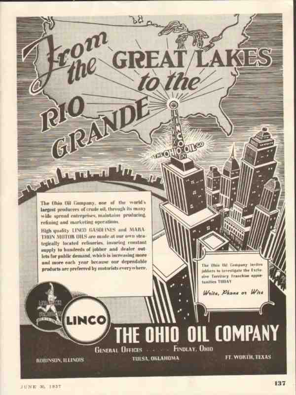 Ohio Oil Company 1937 Vintage Ad Linco Marathon Great Lakes Rio Grande