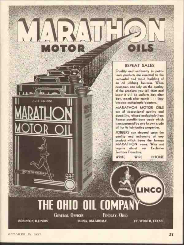Ohio Oil Company 1937 Vintage Ad Linco Marathon Motor Repeat Sales