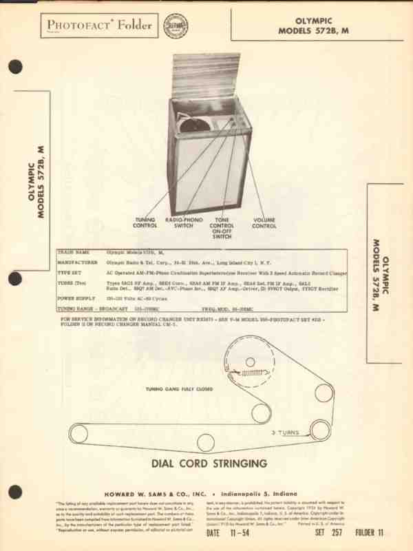 olympic model 572b 572m am fm radio phono sams photofact manual
