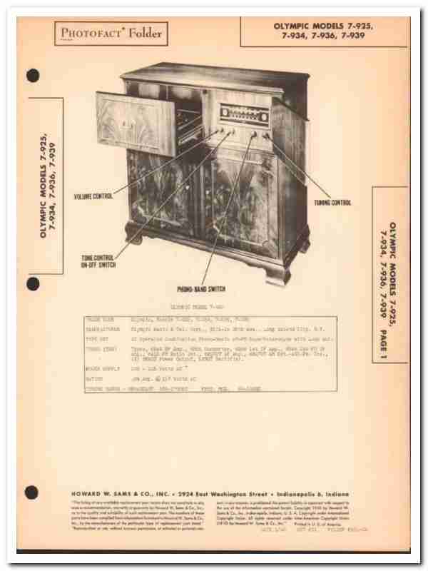 olympic model 7-925 7-93x am fm radio phonograph sams photofact manual