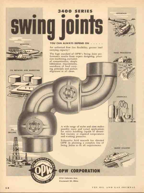 OPW Corp 1953 Vintage Ad Oil Swing Joints Flow Lines 3400 Series