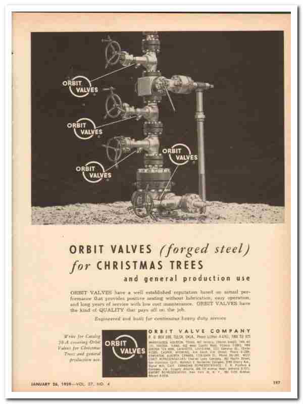 Orbit Valve Company 1959 Vintage Ad Oil Forged Steel Christmas Trees