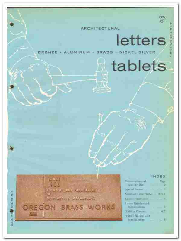 Oregon Brass Works 1964 Vintage Catalog Letters Tablets Plaques Metal
