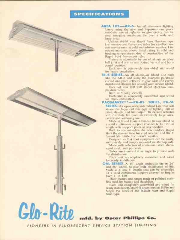 oscar phillips company 1955 glo-rite gas station lighting vintage ad