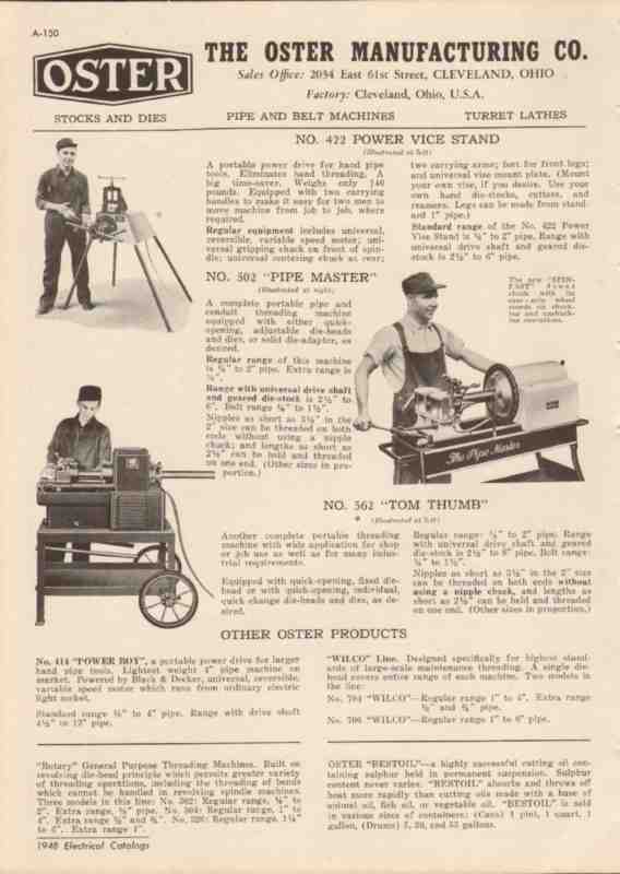 Oster Mfg Company 1948 Vintage Catalog Power Vise Stand Pipe Master