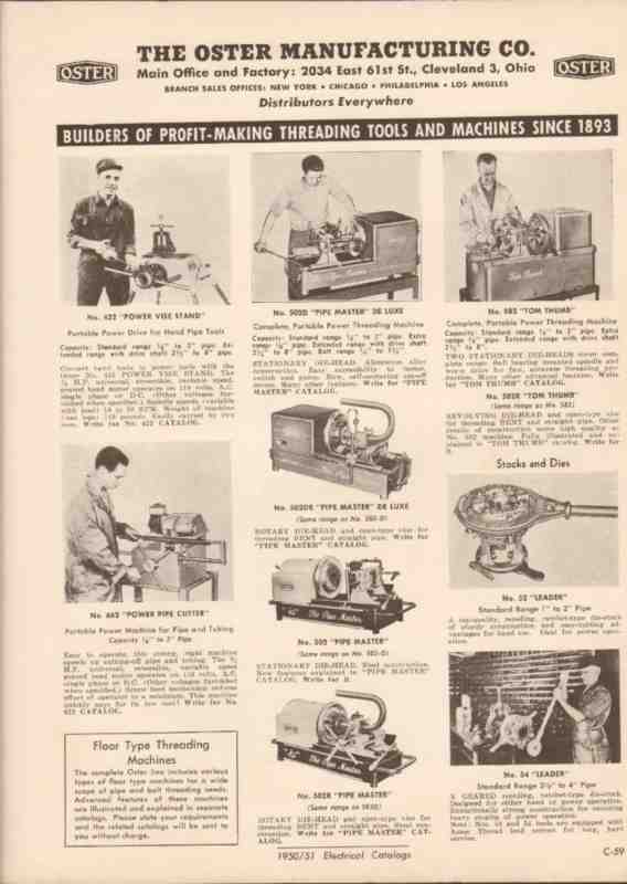 Oster Mfg Company 1941 vintage industrial catalog pipe machine thread