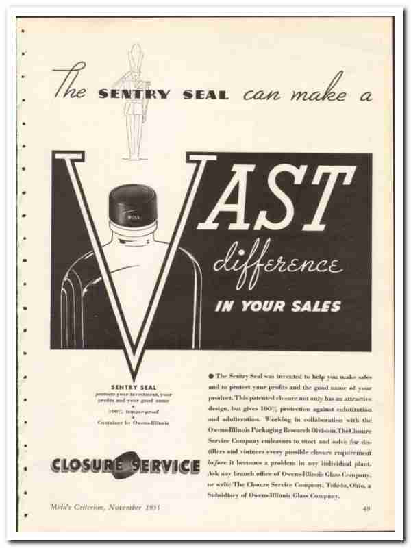 Owens-Illinois Glass Company 1935 vintage ad Sentry Seal vast sales