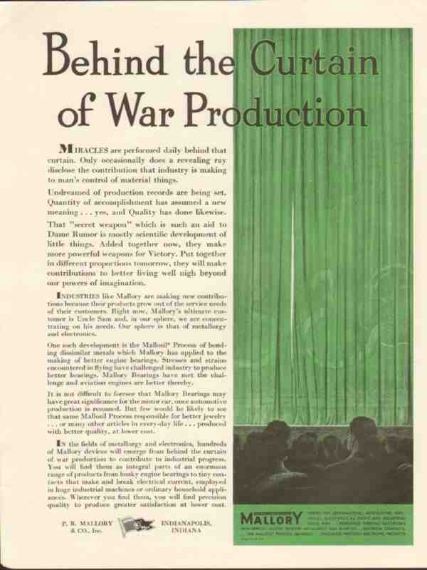 p r mallory company 1943 behind curtain war production ww2 vintage ad