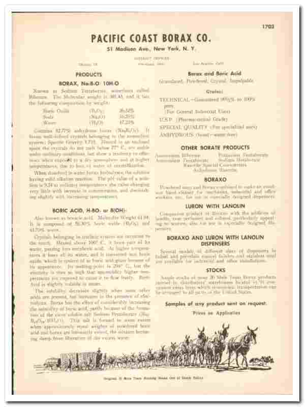 Original 1948 industrial chemical trade vintage catalog for the PACIFIC COAST BORAX COMPANY. Main office was located at 51 Madison Avenue, New York, NY.