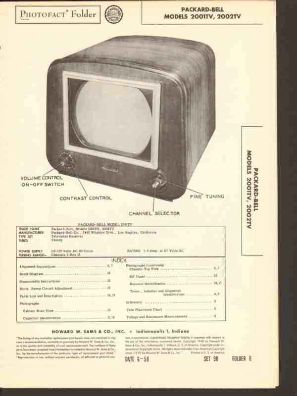 packard-bell model 2001tv 2002tv television sams photofact manual