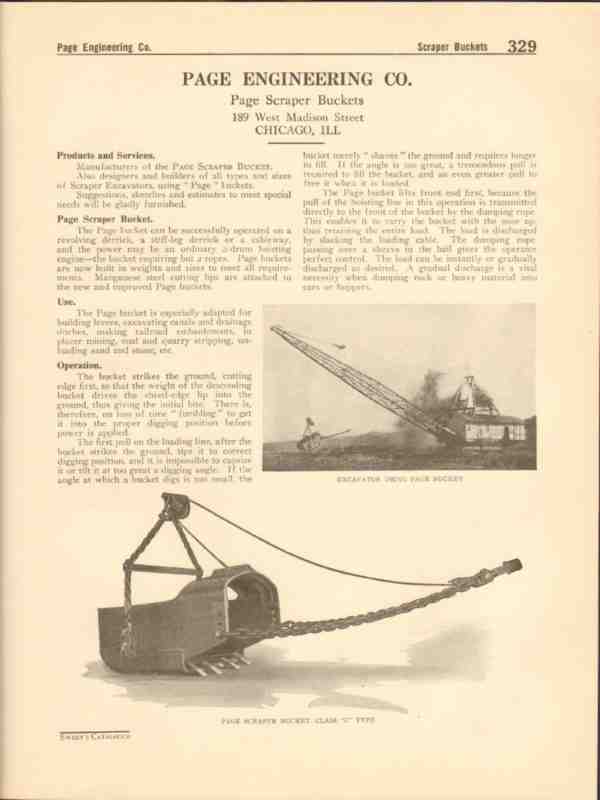 Page Engineering Company 1916 Vintage Catalog Scraper Bucket Excavator