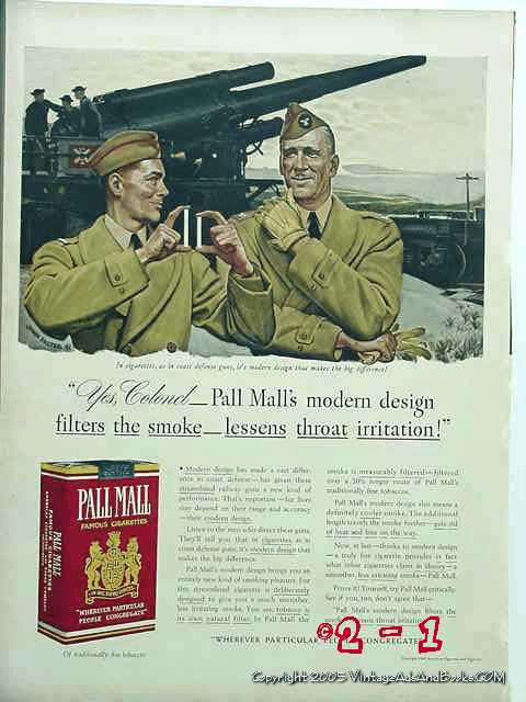 pall mall cigarettes 1941 ww2 coast defense guns vintage ad