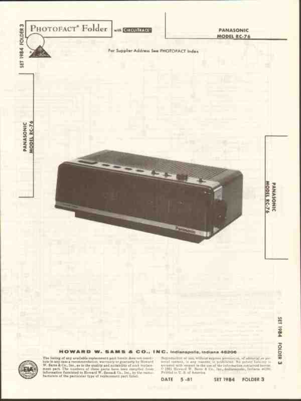 panasonic models rc-76 am fm clock radio sams photofact manual