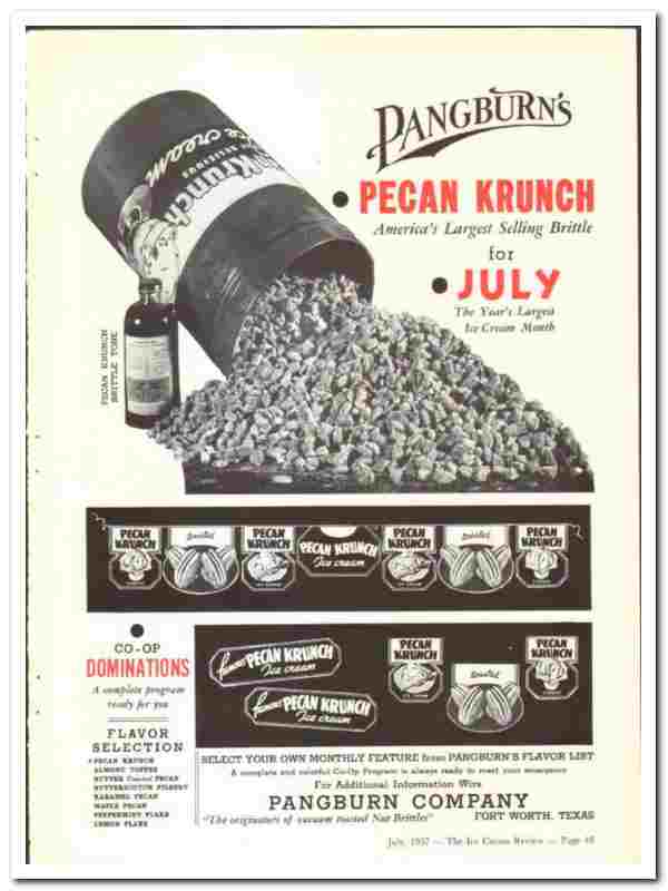 Pangburn Company 1937 vintage ice cream ad Pecan Krunch Brittle July