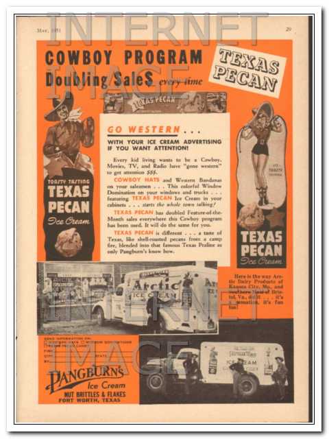 Pangburn Company 1951 Vintage Ad Ice Cream Texas Pecan Cowboy Program