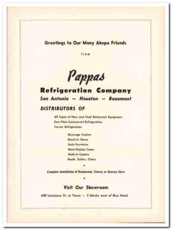 pappas refrigeration company 1953 restaurant tavern ahepa vintage ad