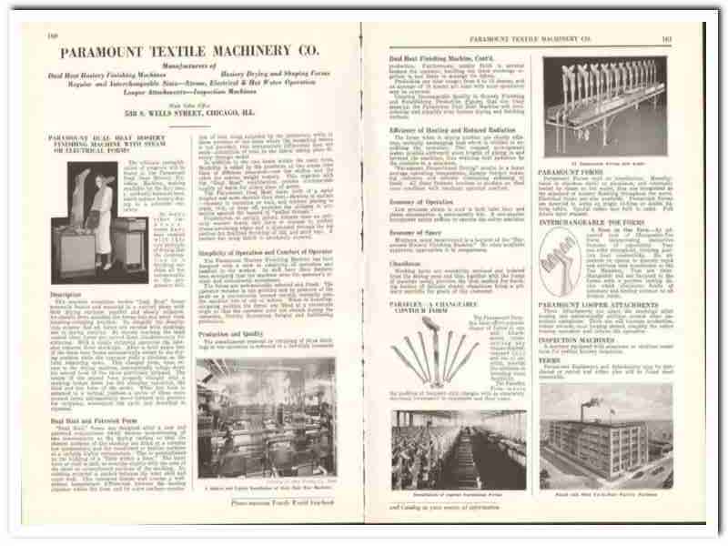 Original 1938 textile trade vintage ad for PARAMOUNT TEXTILE MACHINERY COMPANY. Main office was located at 538 South Wells Street, Chicago, IL.