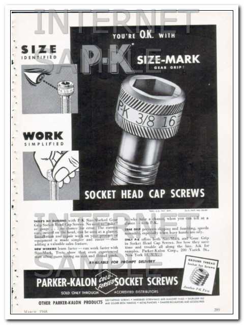 parker-kalon corp 1948 p-k size-mark socket head cap screws vintage ad