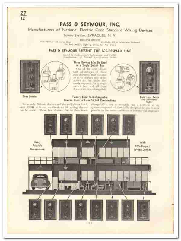 Pass Seymour Inc 1946 vintage electrical catalog wiring device Despard