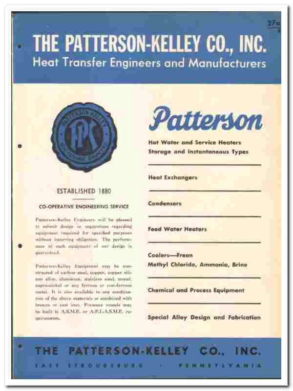Original 1946 plumbing trade vintage catalog for the PATTERSON-KELLEY COMPANY, INC. Main office and plant were located in East Stroudsburg, PA. (Established 1880).