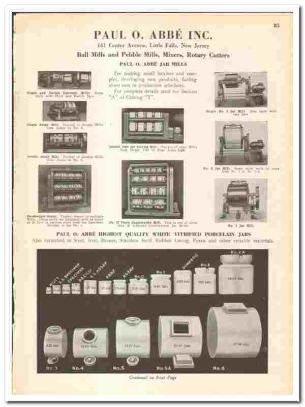 Paul O Abbe Inc 1942 vintage industrial catalog ball pebble jar mills