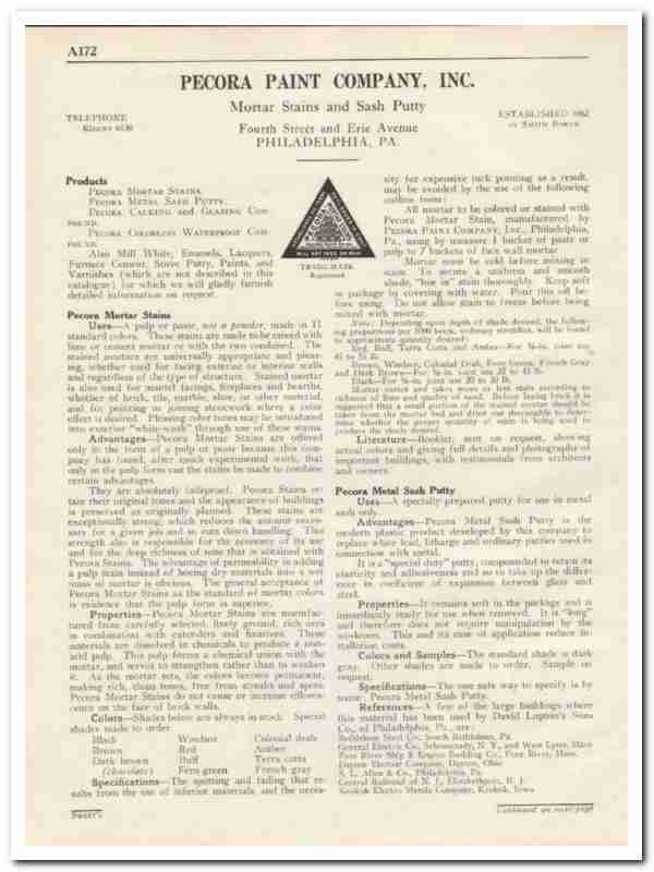 Pecora Paint Company 1931 Vintage Catalog Mortar Stains Sash Putty