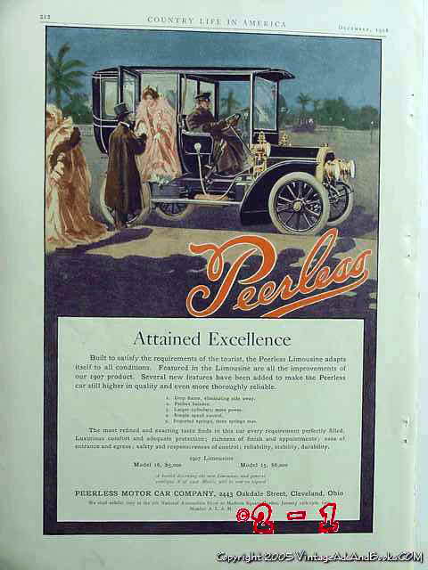 Original vintage magazine ad, PEERLESS MOTOR CAR COMPANY. ..