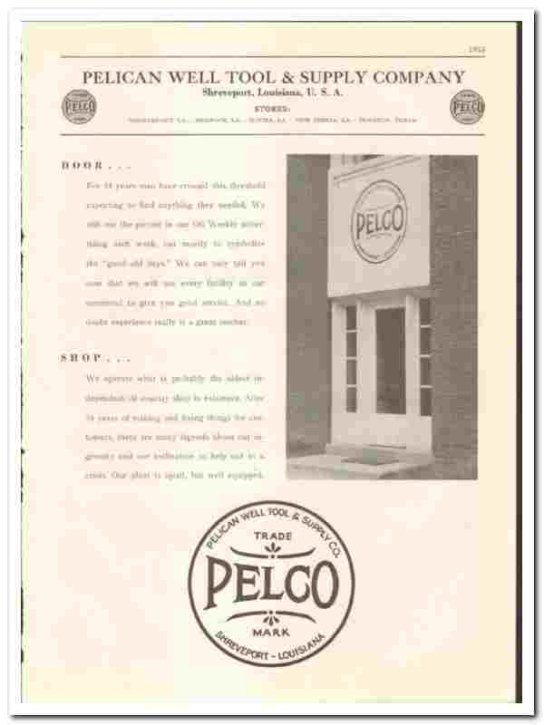 Original 1942 Oil and Gas trade vintage catalog for the PELICAN WELL TOOL & SUPPLY COMPANY. (PELCO). Main office and plant were located in Shreveport, LA. Stores were located in Shreveport, LA, Berwick, LA, Houma, LA, New Iberia, LA and Houston, TX.