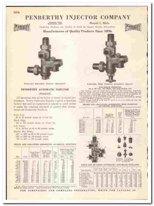 Penberthy Injector Company 1945 vintage industrial catalog valves