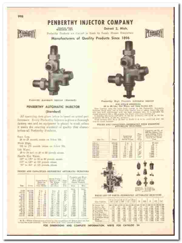 Penberthy Injector Company 1945 vintage industrial catalog valves