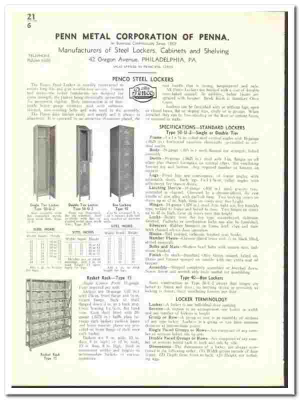 Original 1942 locker trade vintage catalog for the PENN METAL CORPORATION OF PENNA. Main office and plant were located at 42 Oregon Avenue, Philadelphia, PA. (Since 1869).