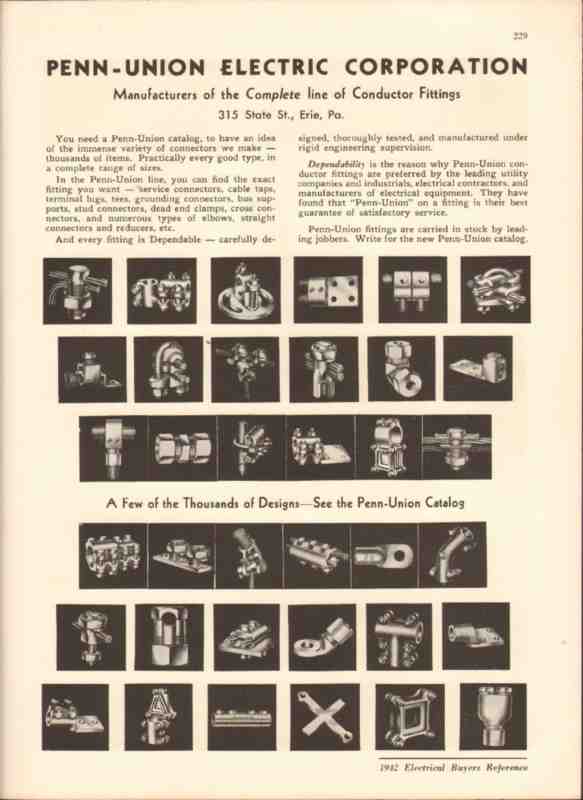 Penn-Union Electric Corp 1943 Vintage Catalog Power Ground Connectors