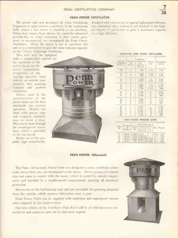 Penn Ventilating Company 1938 Vintage Catalog Rotary Ridge Power