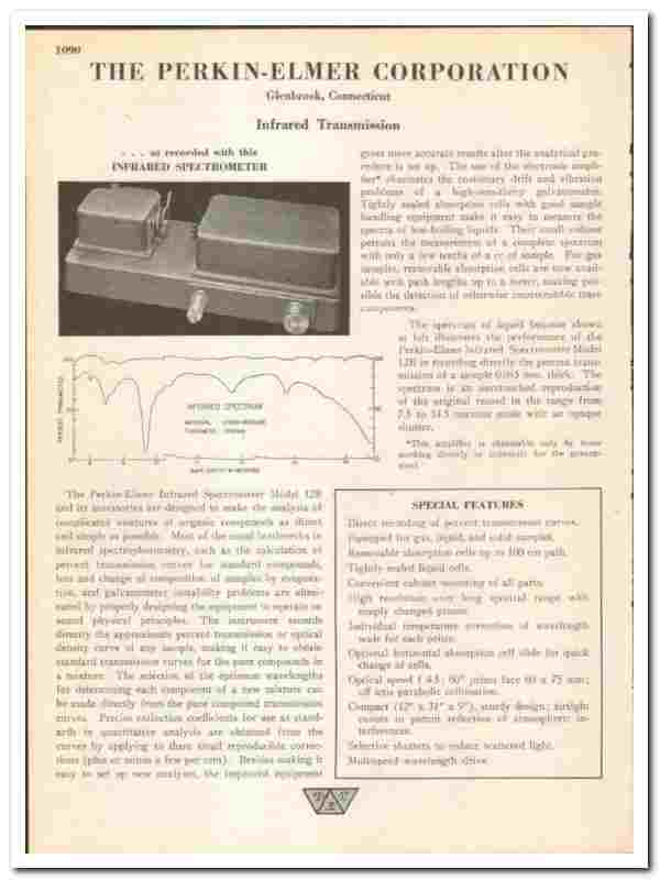 Perkin-Elmer Corp 1945 vintage industrial catalog Spectrometer