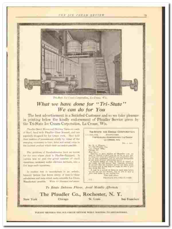 Pfaudler Company 1919 vintage ice cream ad Tri-State La Crosse WI