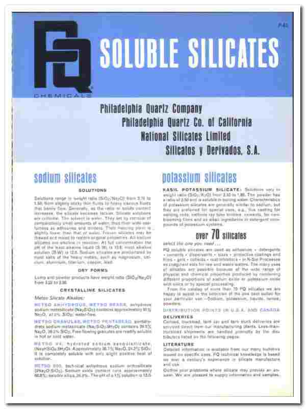 Philadelphia Quartz Company 1970 vintage chemical catalog silicates