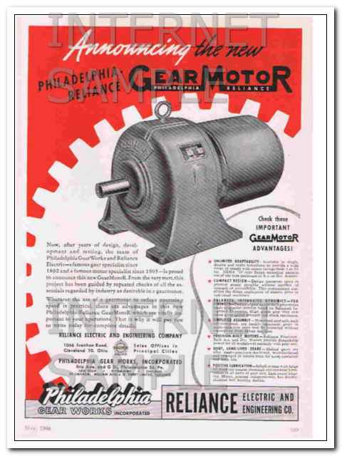 philadelphia-reliance 1948 gear works electric gearmotor vintage ad