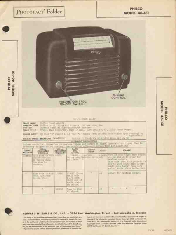 philco model 46-131 4 tube am radio receiver sams photofact manual