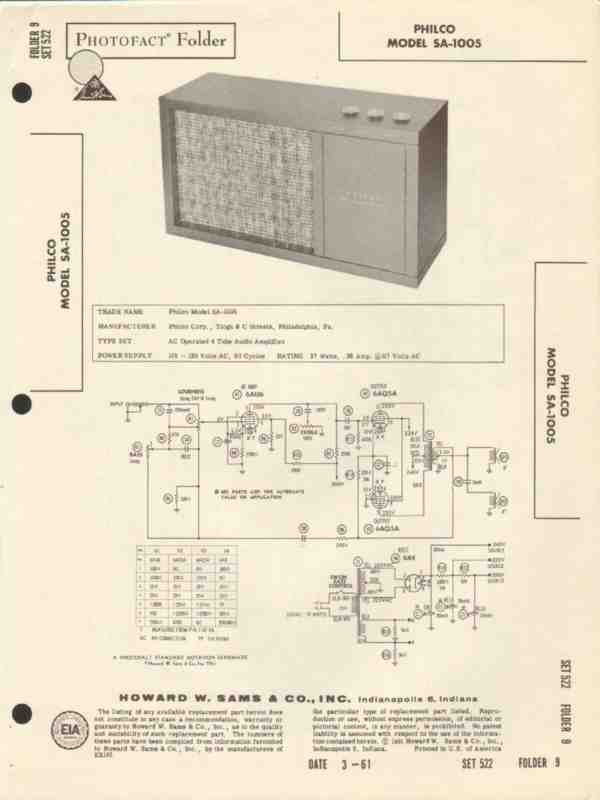 philco model sa-1005 4 tube audio amplifier sams photofact manual