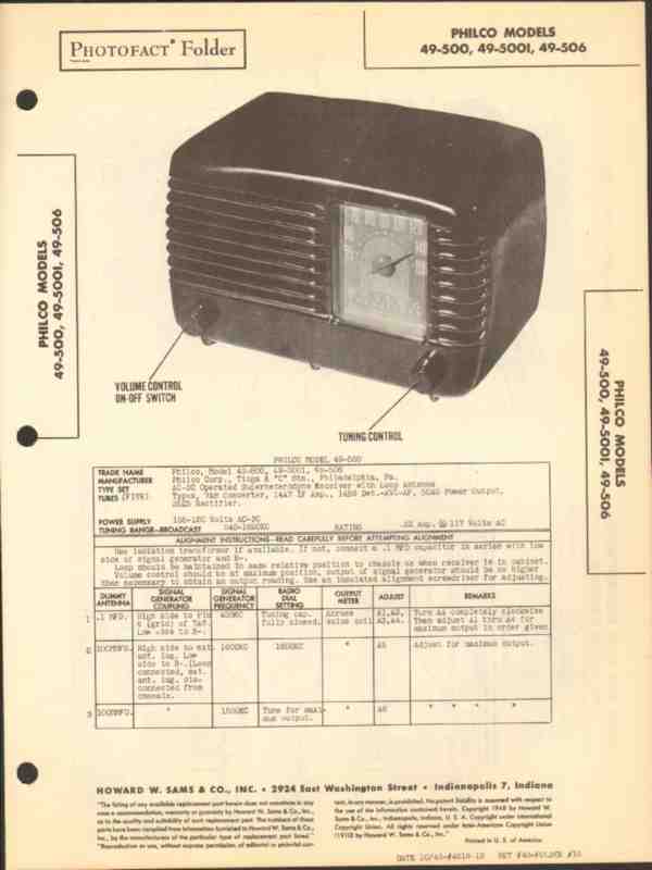 philco models 49-500 49-500i 49-506 am radio sams photofact manual