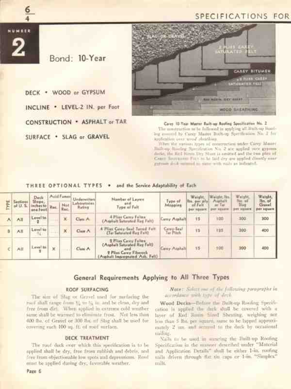 Philip Carey Company 1938 Vintage Catalog Roof Built-Up Specifications